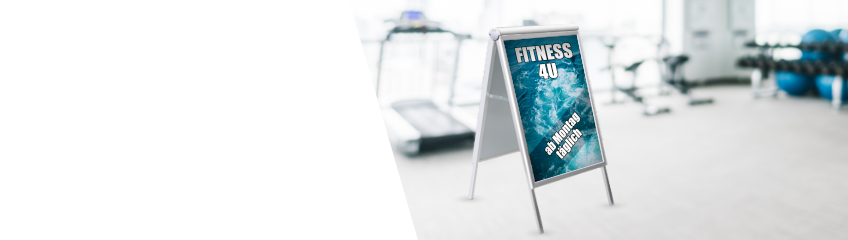 Kundenstopper COMPASSO DIN A1 (wetterfest), 37mm Rahmen, Gehrungsecken, mit Plakaten